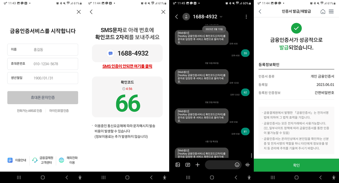 진짜 네 놈이 한 게 맞느냐~를 확인하는 창입니다. 저 1688-4932로 제 휴대폰으로 문자가 수신됩니다.